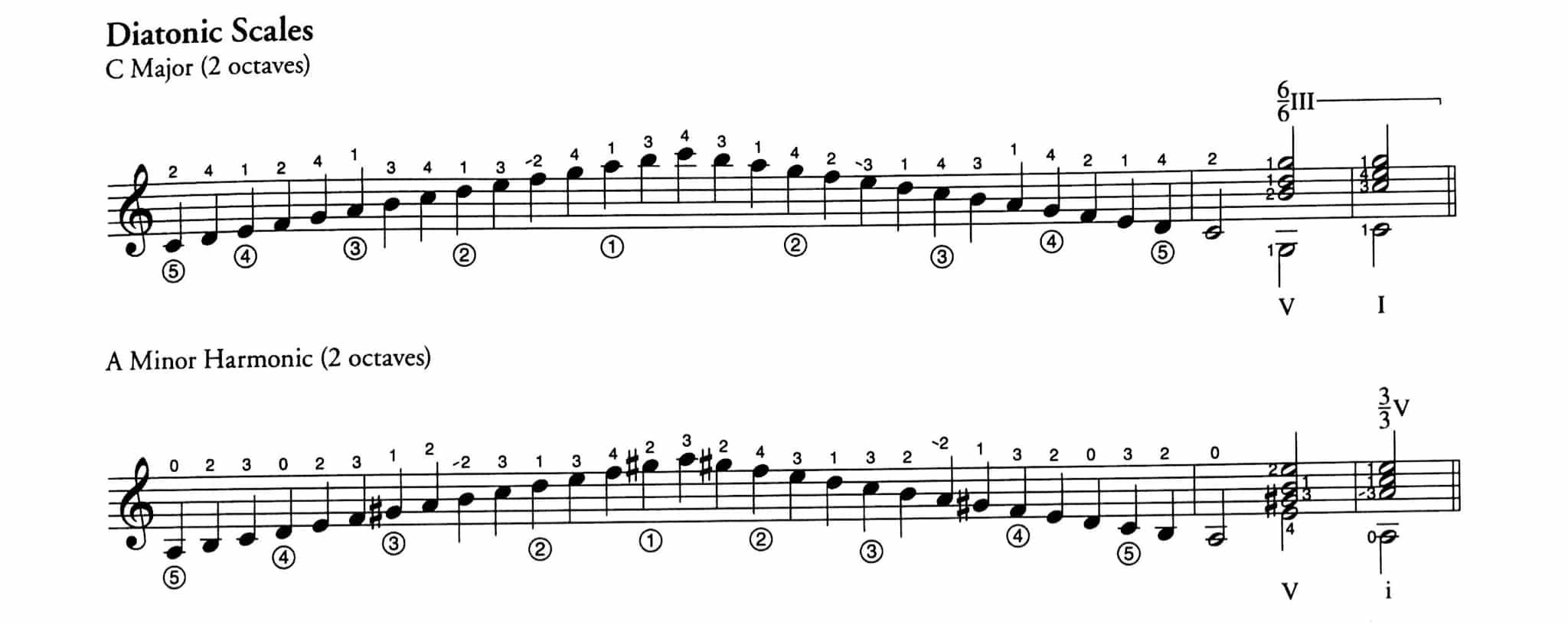 - All major and harmonic minor scales up to 6 sharps or 6 flats