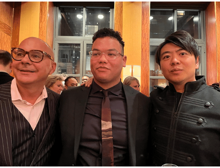 Lukas Barwinski-Brown, CEO, Lang Lang International Music Foundation (left), Joshua Mhoon (center), and Lang Lang (right).